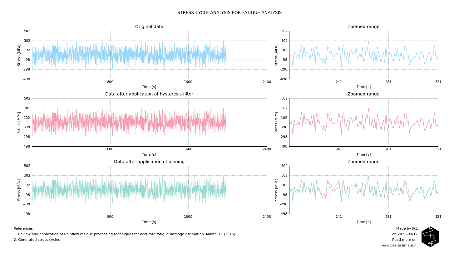 Of course, all the procedures above do not lead to stress cycles yet. In order to obtain these, a method called rainflow counting is applied. Rainflow counting itself is elaborated upon on countless other blogs and websites, but the most important thing is to remember the following: